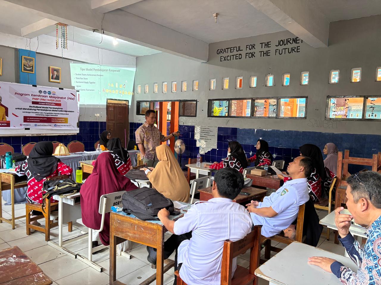 Upaya Peningkatan kompetensi guru dalam merancang pembelajaran yang relevan dengan perkembangan zaman dilaksanakan dalam bentuk Program Kemitraan Masyarakat (PKM) bertajuk “Pelatihan Desain Lingkungan Pembelajaran Matematika yang Interaktif dan Dinamis” pada Rabu, 23 Juli 2025. Kegiatan ini berlangsung di SMP Negeri 1 Maros dan terselenggara atas kerja sama dengan Musyawarah Guru Mata Pelajaran (MGMP) Matematika SMP...
