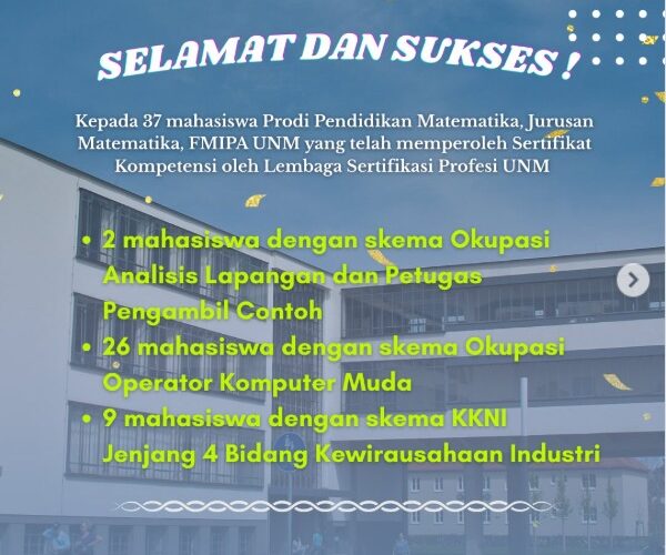 37 Mahasiswa Pendidikan Matematika FMIPA UNM Raih Sertifikat Kompetensi LSP UNM